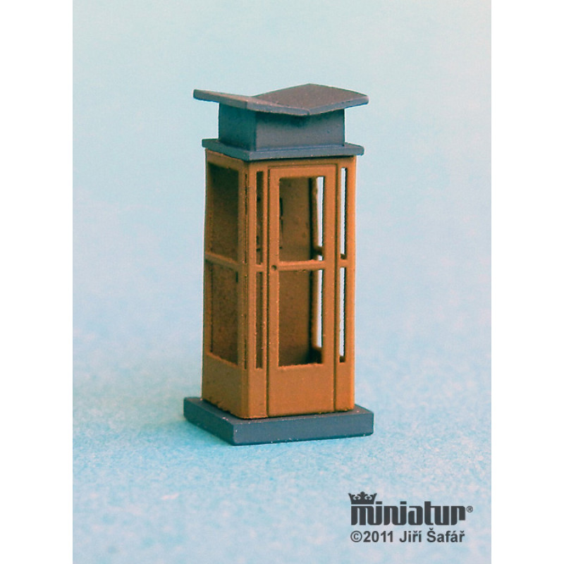 Stavebnice velmi rozšířené telefonní budky, která byla dřív skoro v každé ulici. Obsahuje odlitky podstavce a střechy, lept bočních stěn a folii na zasklení. Je určena zručným modelářům.