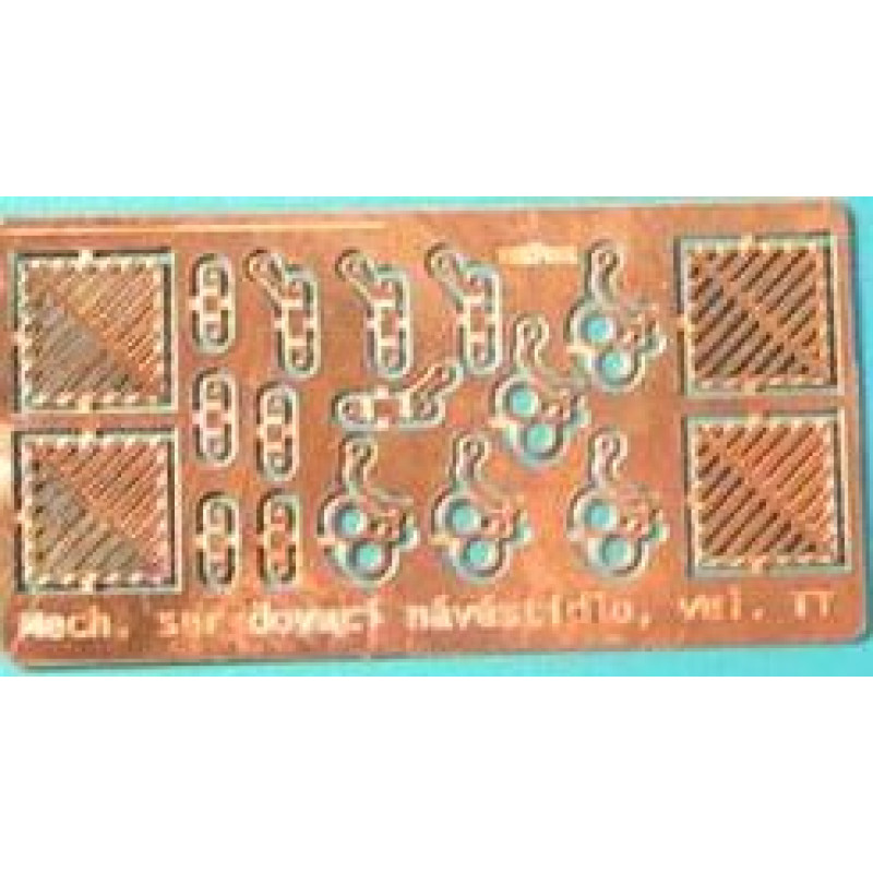 Pohyblivé části návěstidla jsou vyleptány do 0,3 mm mosazného plechu, po vyřezání, nabarvení a zabroušení připravena k použití. Celkem je možno z jednoho plechu postavit 4 návěstidla.