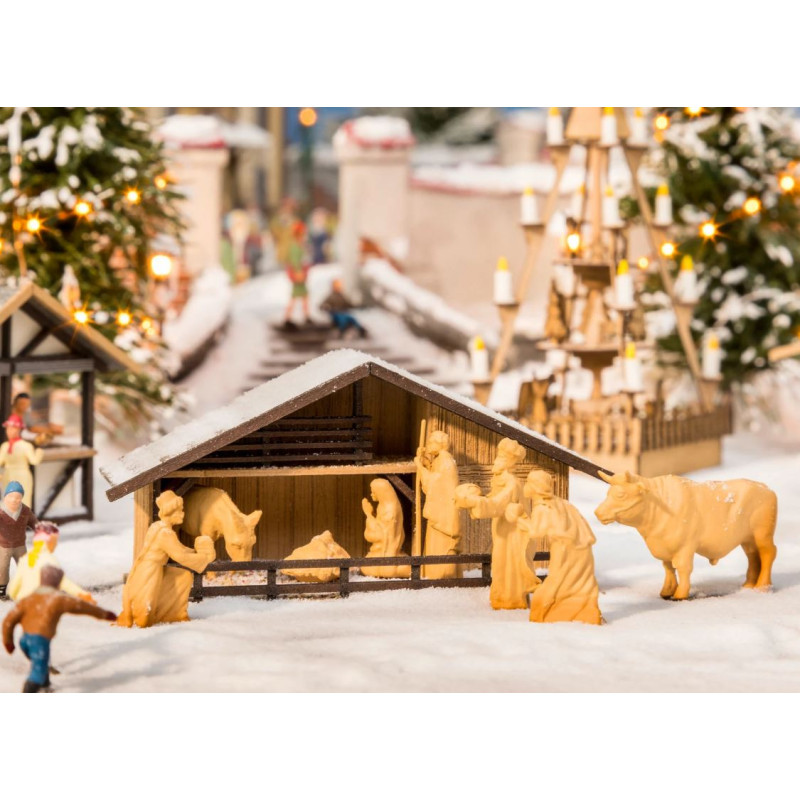 Vánoční betlém s dřevěnými figurkami, H0, Noch 14394