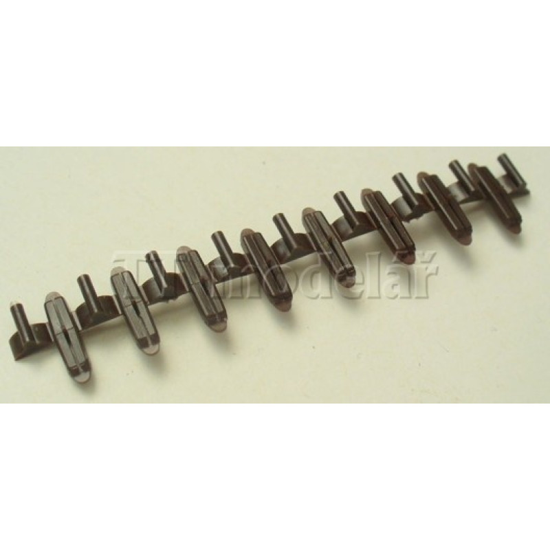 Sáček s 20 kusy izolačních kolejnicových spojek v hnědé barvě, které jsou určeny pro kolejnici o výšce 2,07 (TT modelové kolejivo a HO Elite, proto je na nich uvedeno TT/HO).