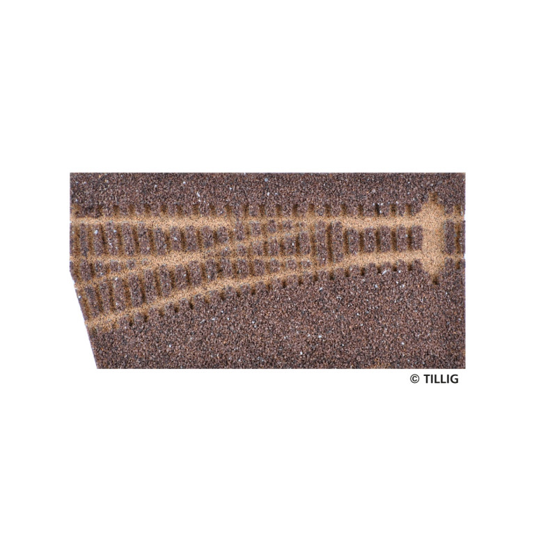 Kolejové podloží pro pravou výhybku, hnědé, 15°, H0, Tillig 86513