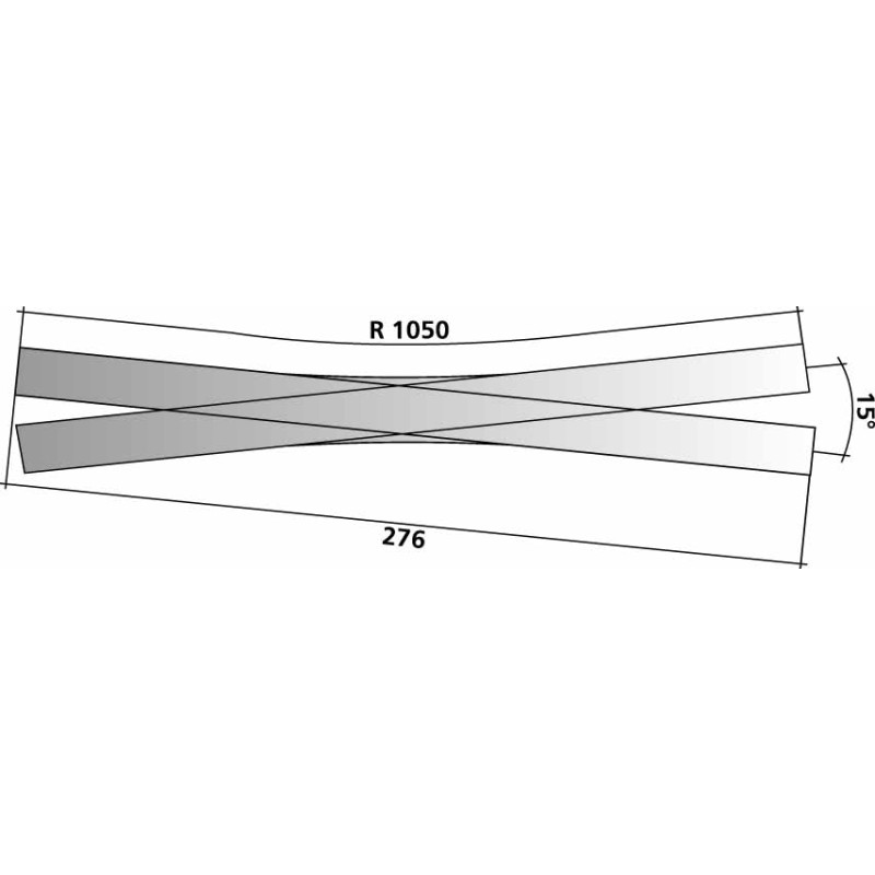 Dvojitá křižovatková výhybka, typ Baeseler, úhel odbočení 15°, R 1.050 mm, délka 276 mm.