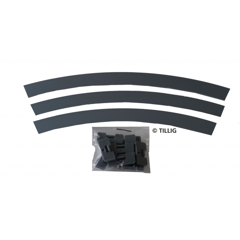 Povrch komunikace s asfaltem/betonem, oblouk, R 250 mm, 45°, 3 kusy, tramvajové kolejivo Luna, H0, Tillig 87847