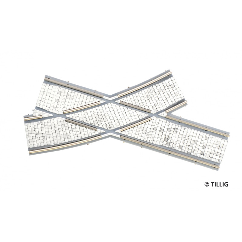 Oblouková křižovatka symetrická s dlažbou, tramvajové kolejivo Luna, H0, Tillig 87653