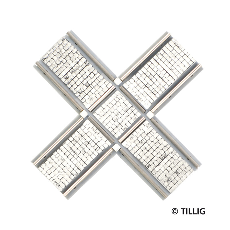 Pravoúhlá křižovatka s dlažbou, tramvajové kolejivo Luna, H0, Tillig 87723