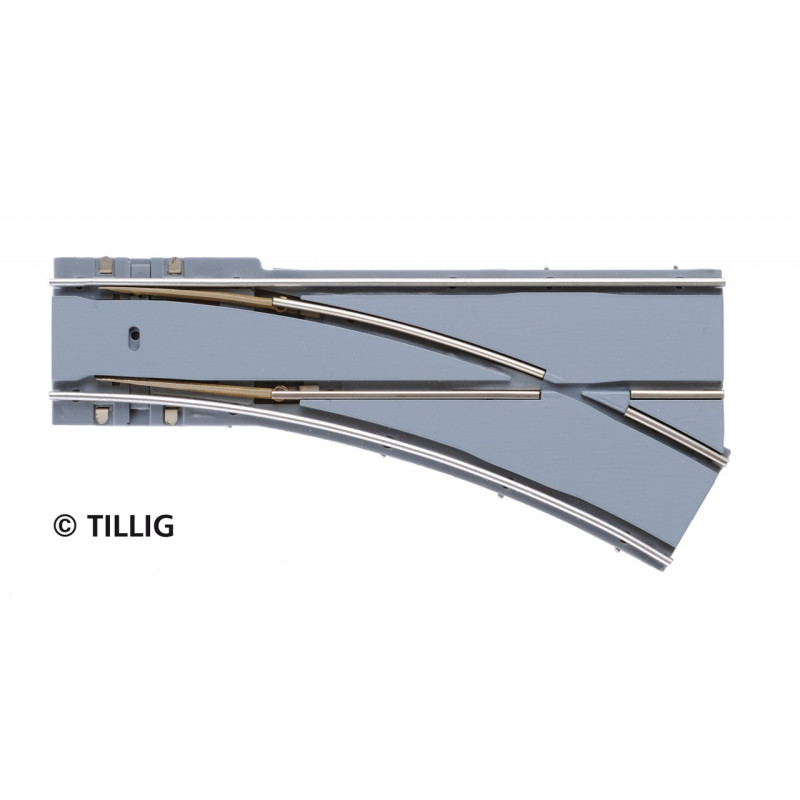 Výhybka jednoduchá levá s asfaltem/betonem, R 250 mm, 25°, tramvajové kolejivo Luna, H0, Tillig 87584