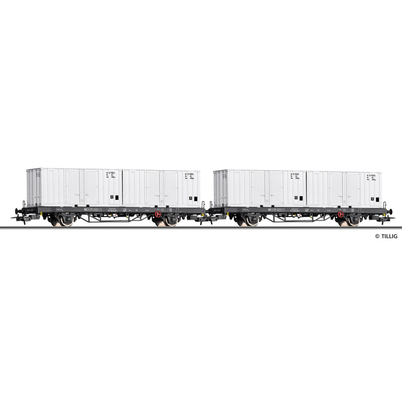 Set dvou kontejnerových vozů Post aa-t/12,8 naložených kontejnery, Deutsche Post, IV. epocha, H0, Tillig 70056