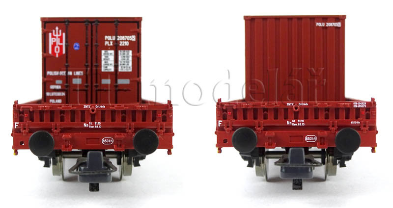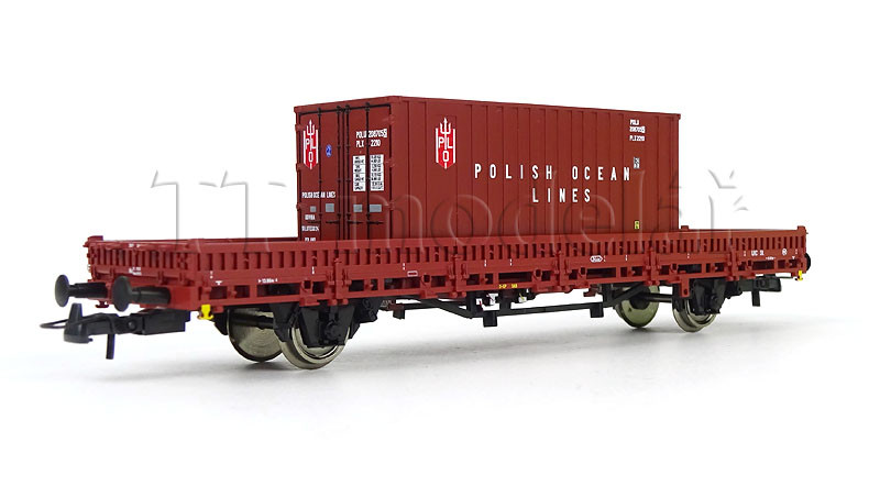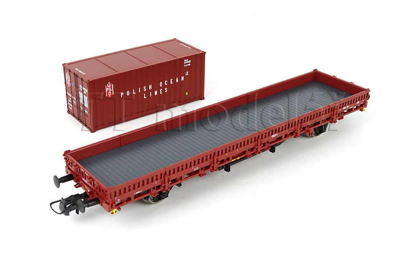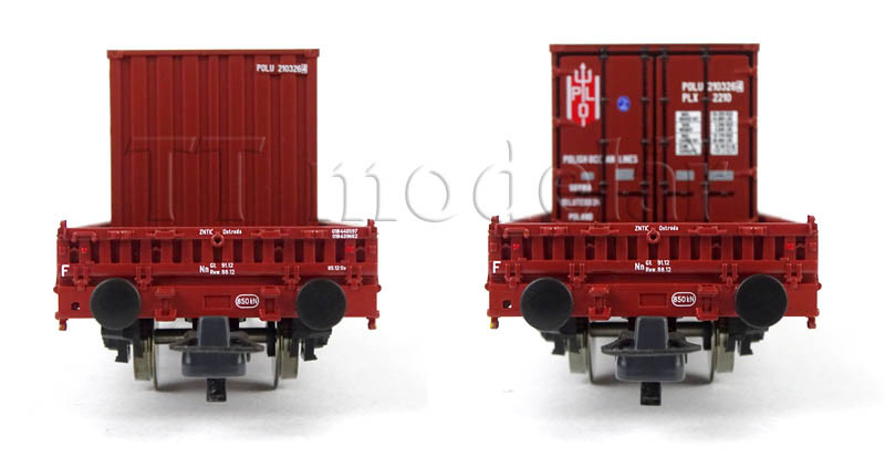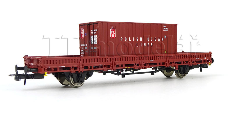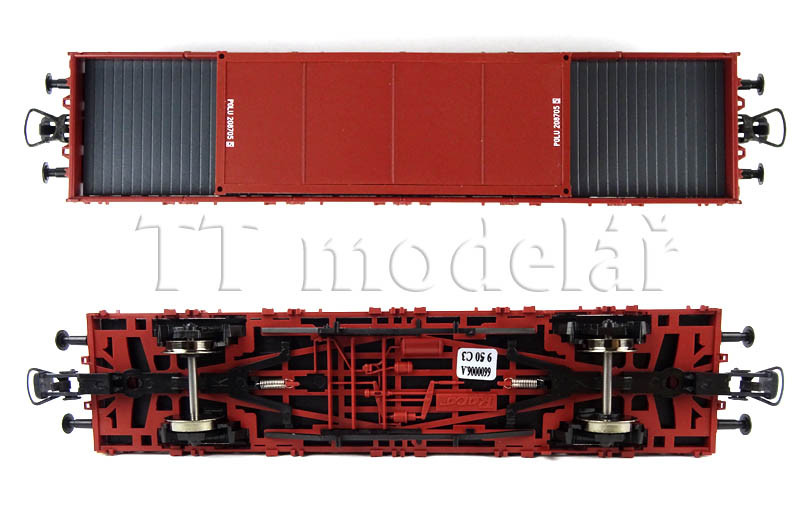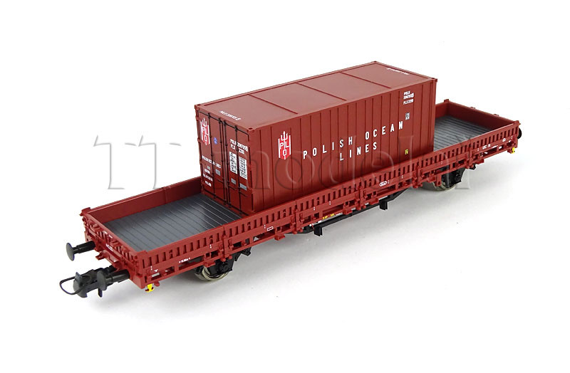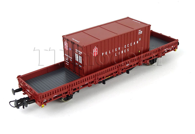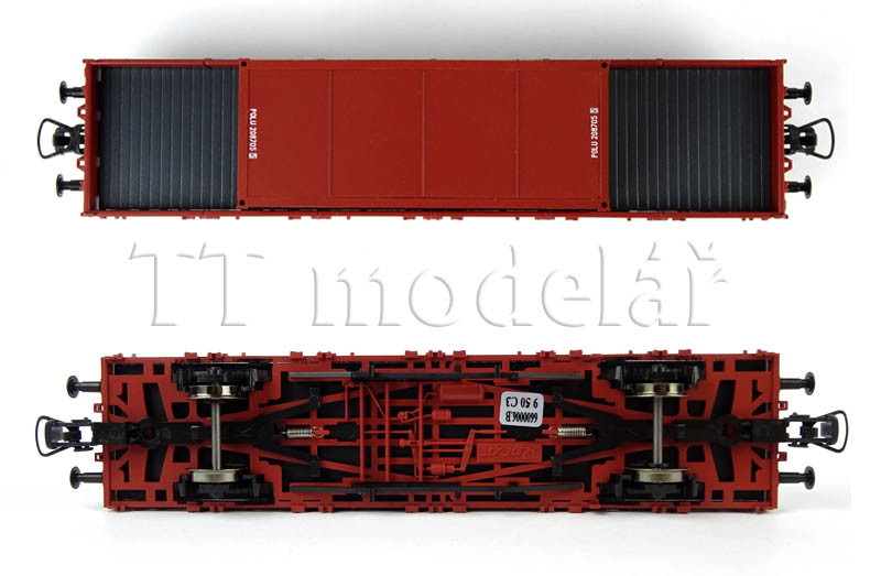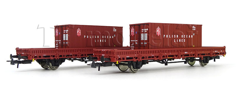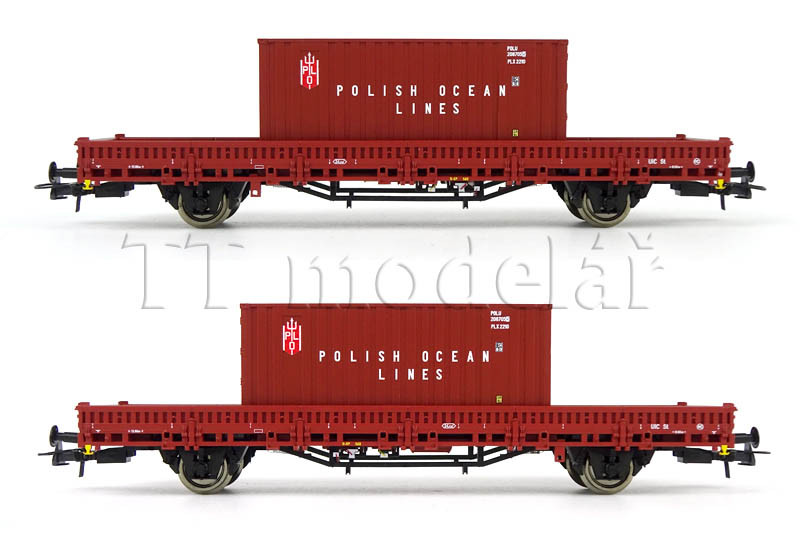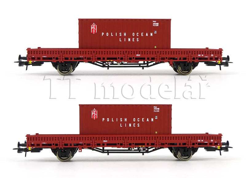 Set dvou nízkostěnných vozů ložených kontejnery, PKP, IV. epocha, H0, Roco 6600006
