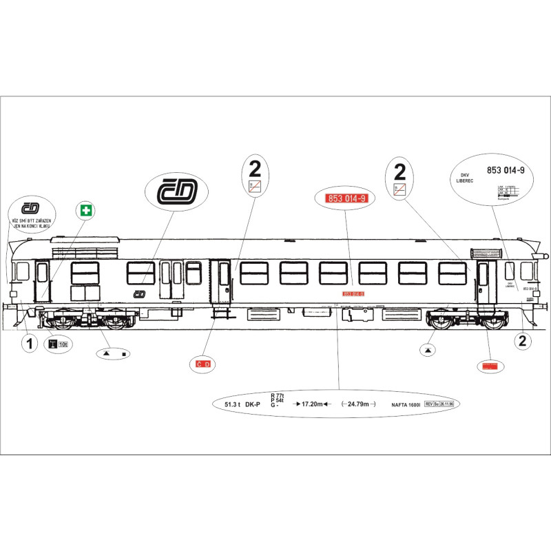 Obtisky na 852, 853, červenožlutý, H0, Jacek 87OM8001