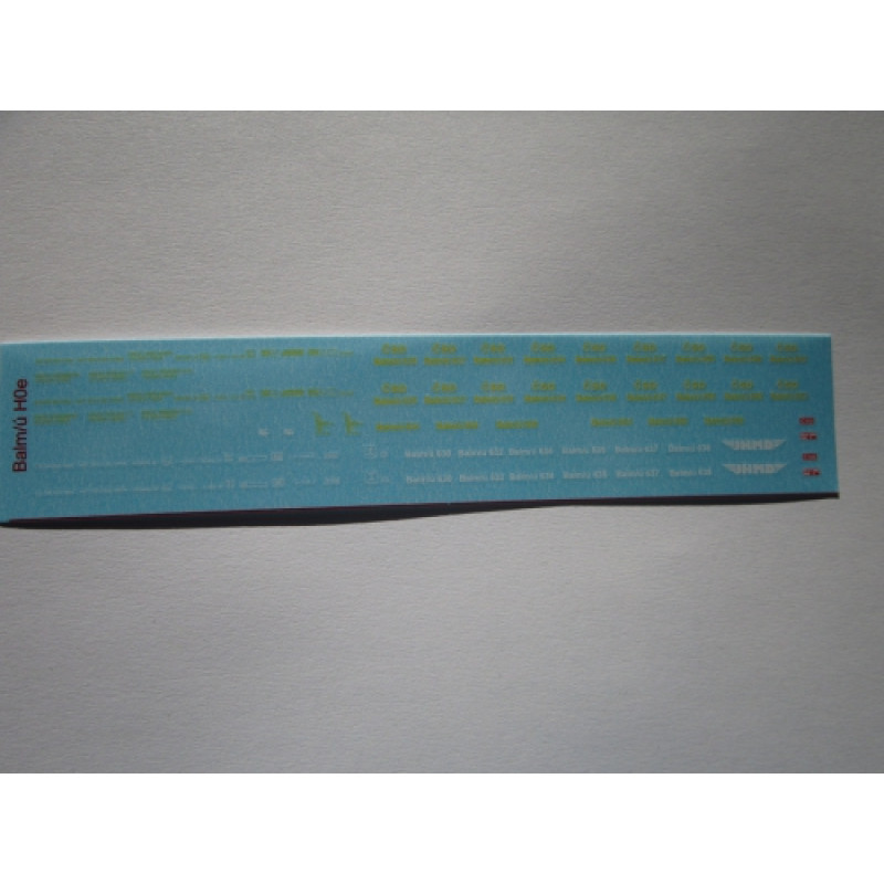 Popisy formou obtisků ve žluté i bílé barvě, obsahuje 10 různých čísel vozů a vozová depa ze všech čtyř tratí ČSD v epoše 3 a 4, dále 6 různých čísel vozů z JHMD v V. a VI. epoše.
