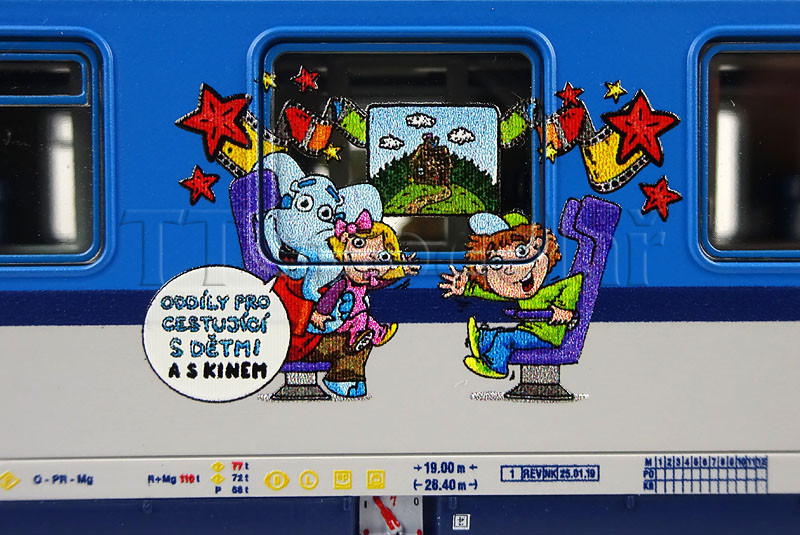 První vůz je 1./2. třídy tyou ABmz 346, druhý je 2. třídy typu Bmz 226 a třetí je 2. třídy typu Bmz 229 s dětským kinem.