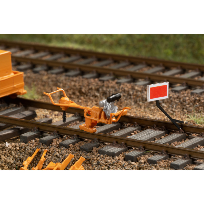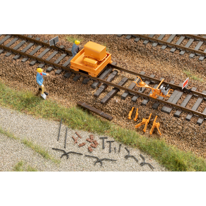 Díky široké škále nástrojů a materiálů je stavebnice trati dokonalým doplňkem k tématu „Údržba železnic. Soupravu doplňuje detailní šroubovák, dva závěsné zvedáky, kleště na pražce, klíče, páčidla atd. Díky přiloženým pražcovým šroubům, žebrovaným plechům, držákům a jednotlivým dřevěným pražcům jsou scény stavby tratí realističtější. Potřebnou bezpečnost zajišťují dvě ochranné signální desky, které lze umístit do koleje.