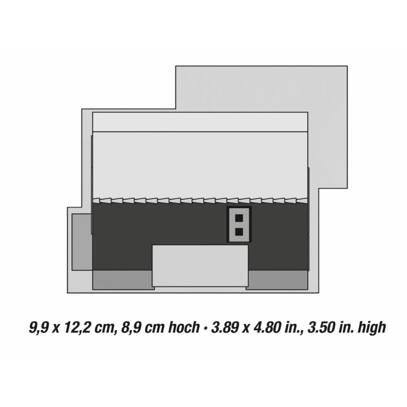 Rozměry: 9,9 × 12,2 cm, výška 8,9 cm..