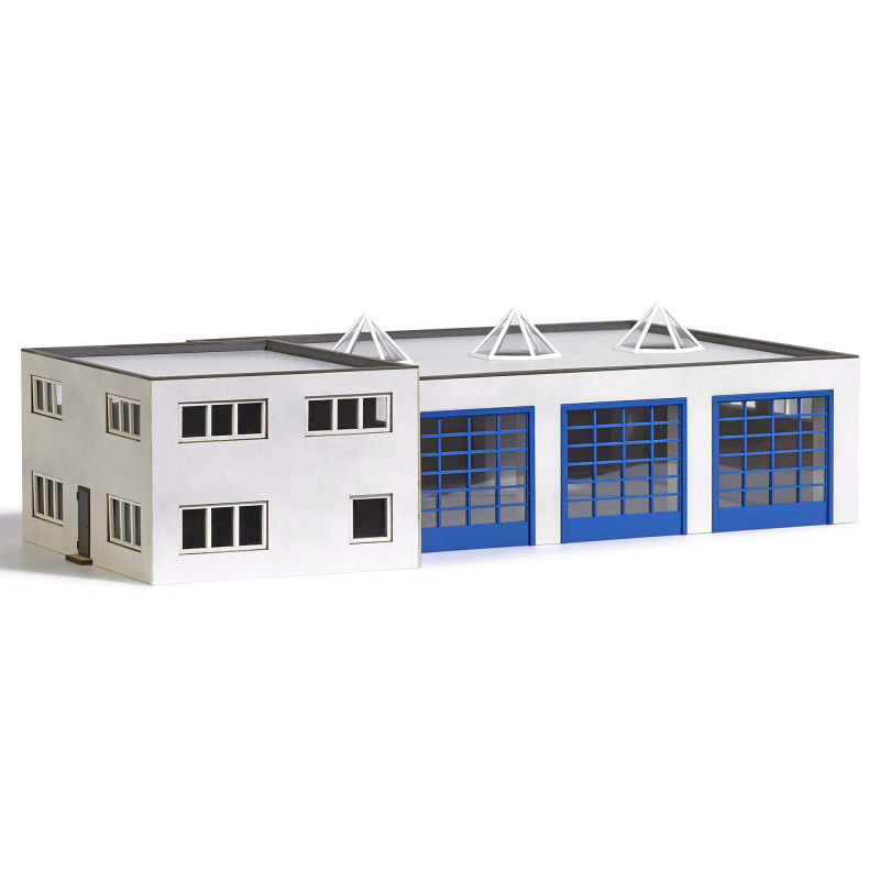 Velká hala se samostatnou administrativní budovou. Univerzálně využitelná. Tři velké vjezdy (49 x 50 mm). Obvodové řady oken na dvou stranách budovy. Tři prosklené světlíky na střeše. Dvoupodlažní administrativní budova s bočními vchody a plochou střechou.
