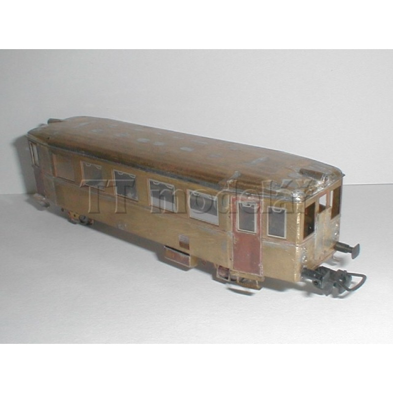 Stavebnice motorového vozu a přípojného vozu Blm (BDlm) z leptaného poniklovaného plechu.