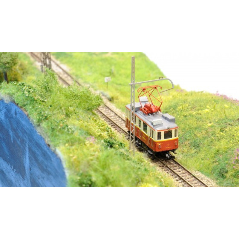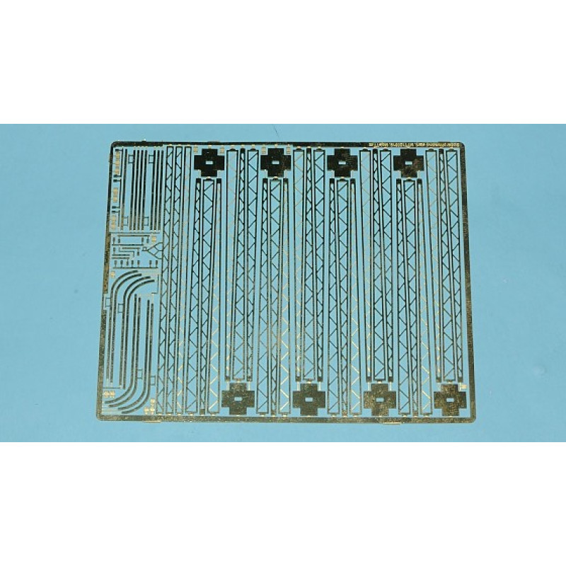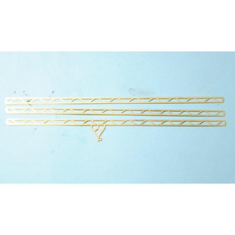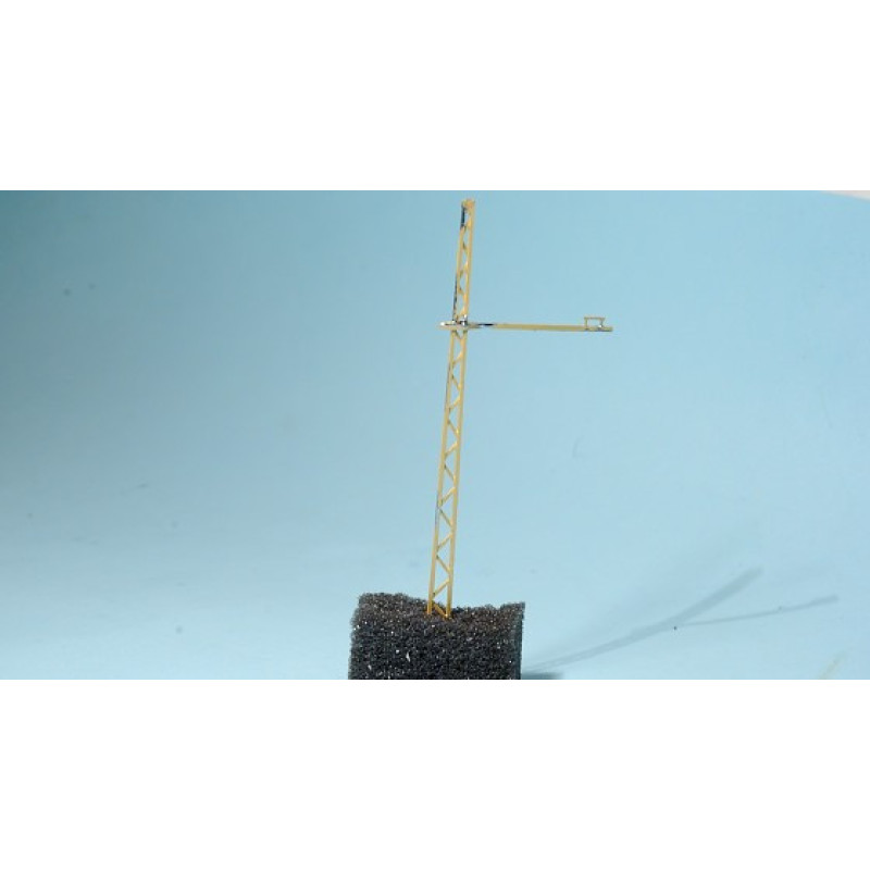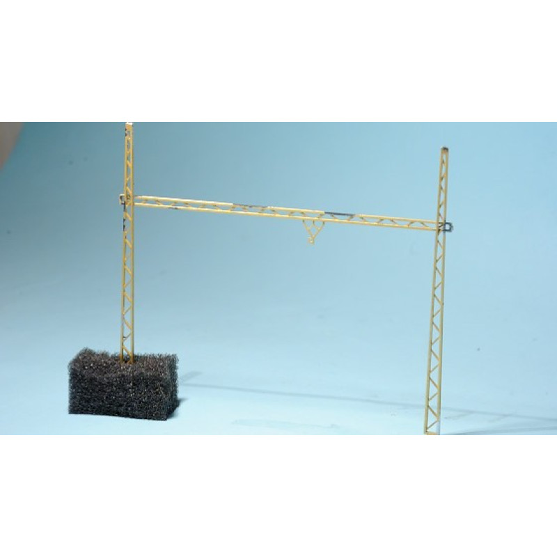 Leptaná stavebnice 8 ks starých příhradových stožárů pro trakční vedení. Výška cca 80 mm. Součástí jsou i držáky (4x krátké rovné a 4x dlouhé se zahnutím na konci) a 1 dvoukolejné břevno – délka 90 cm.