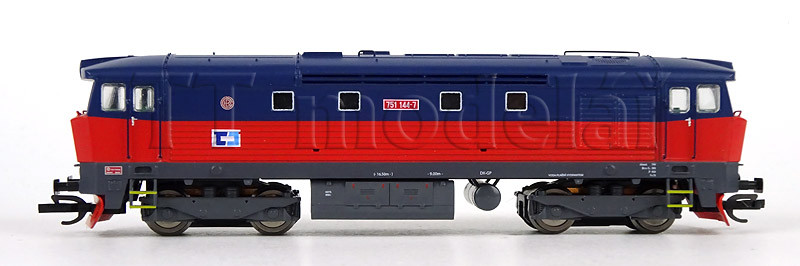 Model legendární a kultovní lokomotivy z konce šedesátých let, která jezdí dodnes. Konkrétnímu stroji odpovídá použití hranatých nárazníků, použití závěsek a méně obvyklé barevné provedení.