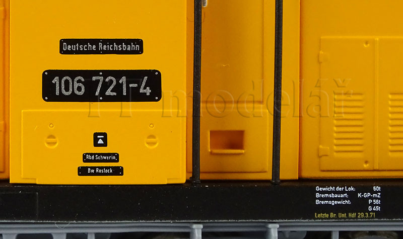 Velmi precizně zpracovaný model motorové lokomotivy BR 106, v Německu využívané především pro posunovací službu. Recenzi modelu naleznete na http://www.trainmania.info/clanky.html#br106, doplňkovou galerii na http://www.trainmania.info/br106.html.