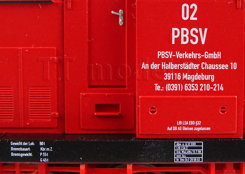 Motorová lokomotiva V 60 D, vlečková lokomotiva 02, PBSV-Verkehrs-GmbH, V. epocha, TT, DOPRODEJ, Tillig 96325