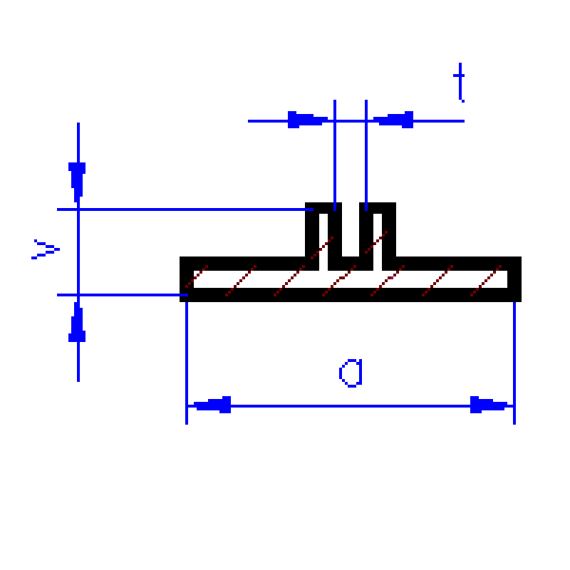 Přírubový profil, mosaz, L=500 mm, š. drážky=0.5 mm , rozměry 6 x 3 mm, MSZ 9863