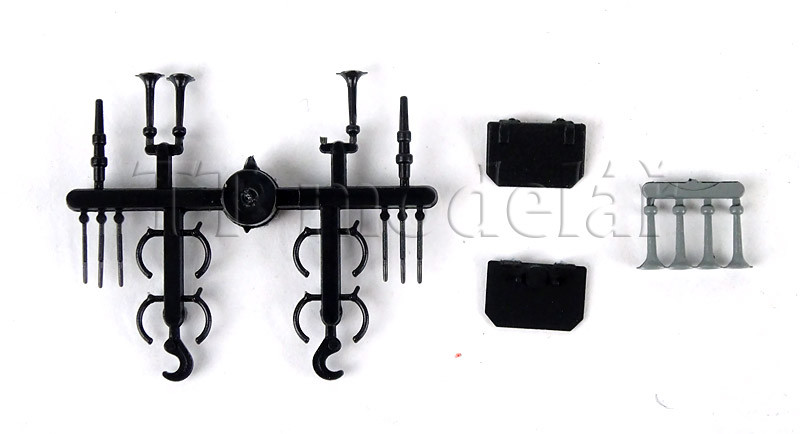 K modelu jsou přibaleny doplňky (spřáhla, stěrače, hadice, háky).
