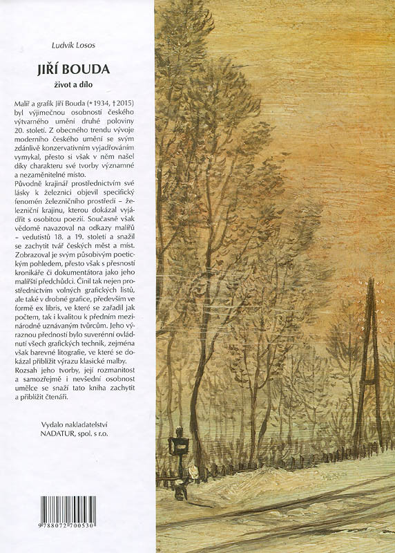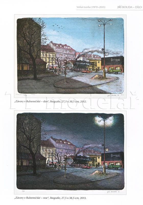 Malíř a grafik Jiří Bouda (* 1934, † 2015) byl výjimečnou osobností českého výtvarného umění druhé poloviny 20. století. Původně krajinář prostřednictvím své lásky k železnici objevil specifický fenomén železničního prostředí – železniční krajinu, kterou dokázal vyjádřit s osobitou poezií. Současně však vědomě navazoval na odkazy malířů – vedutistů 18. a 19. století a snažil se zachytit tvář českých měst a míst.