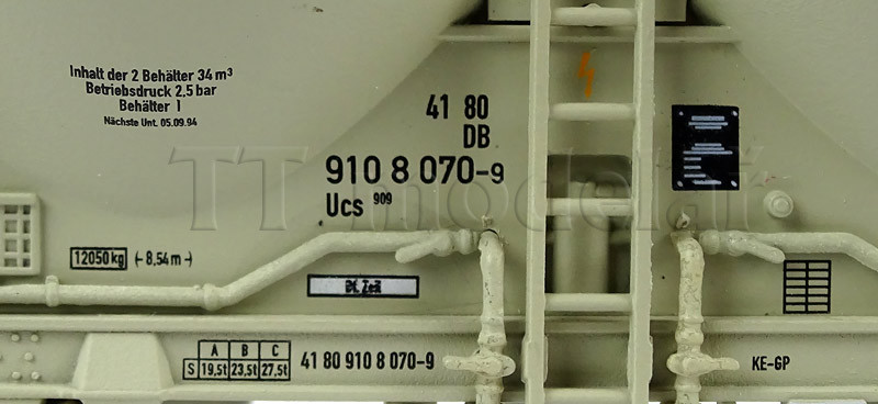 Nádobový vůz pro přepravu cementu řady Ucs-v, DR, s opravami laku, IV. epocha, TT, Piko 47755