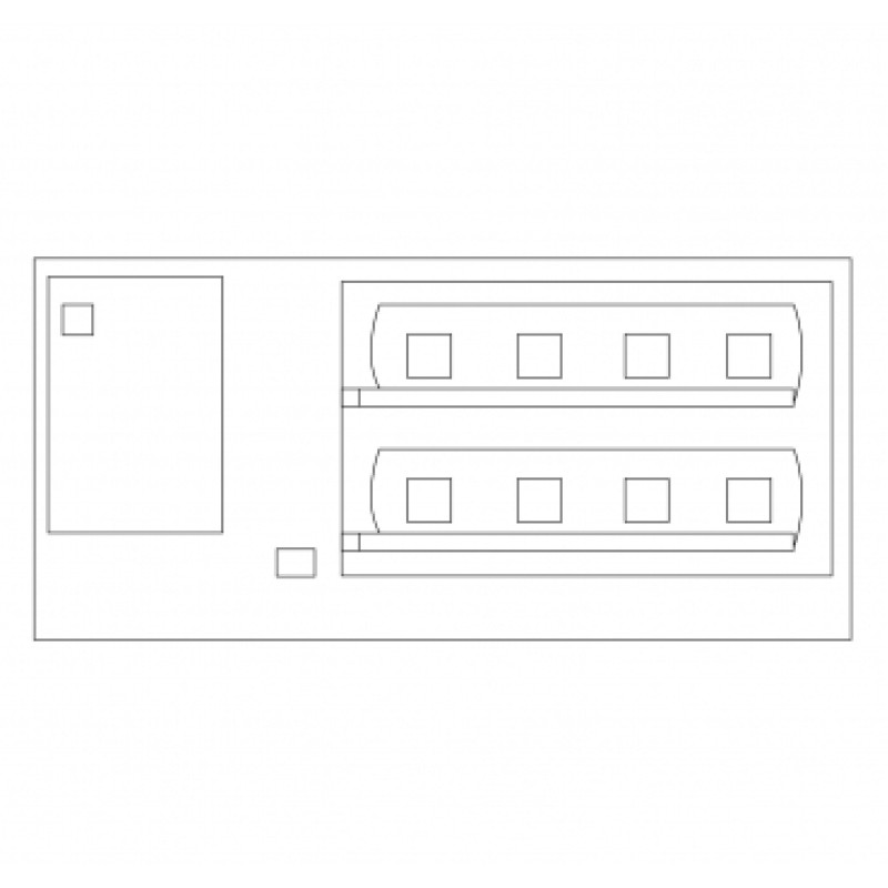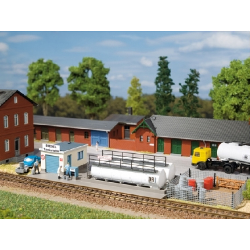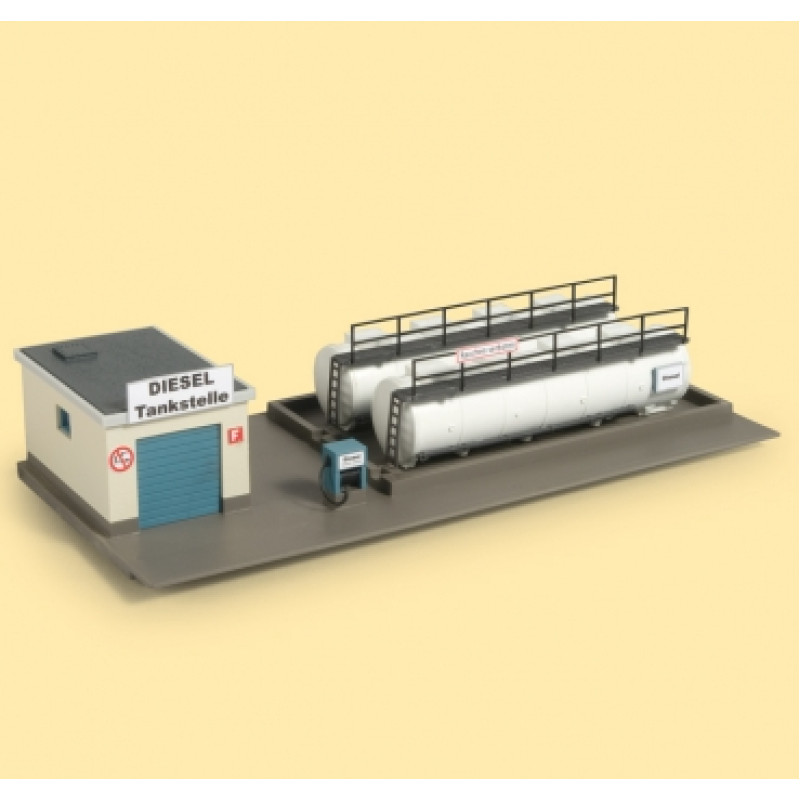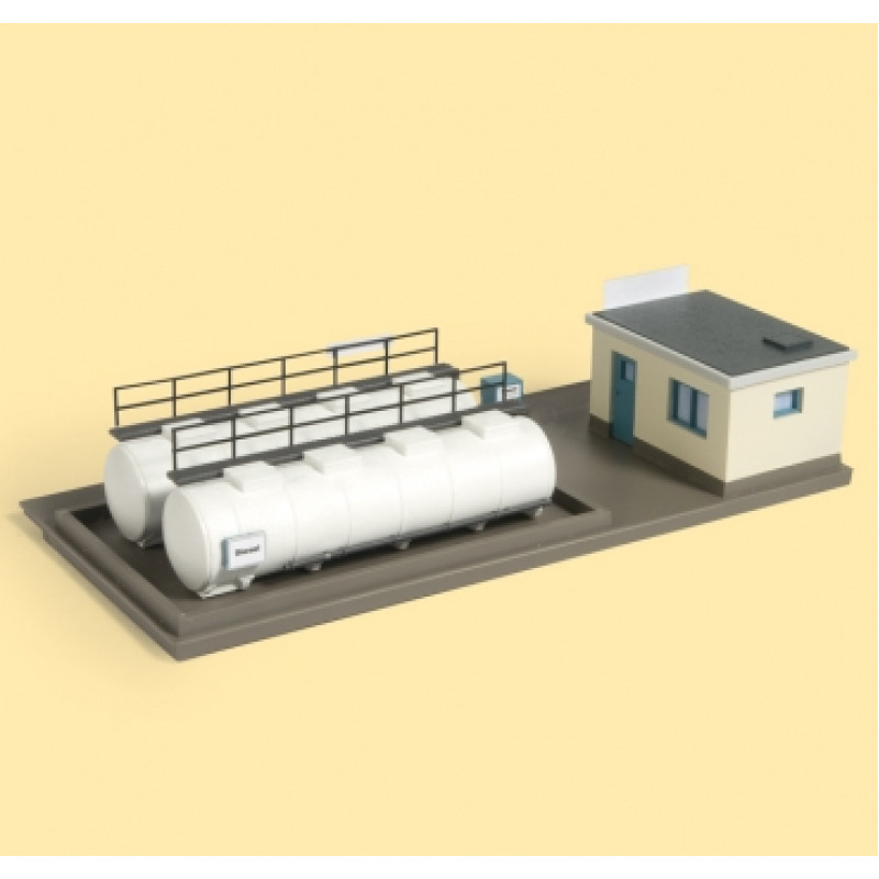 Doplňování paliva pro motorovou trakci. Obsahuje dvě nádrže, vanu pro zachycování oleje, čerpadla a přístřešek pro maziva. Rozměry: 150 x 70 x 31 mm.