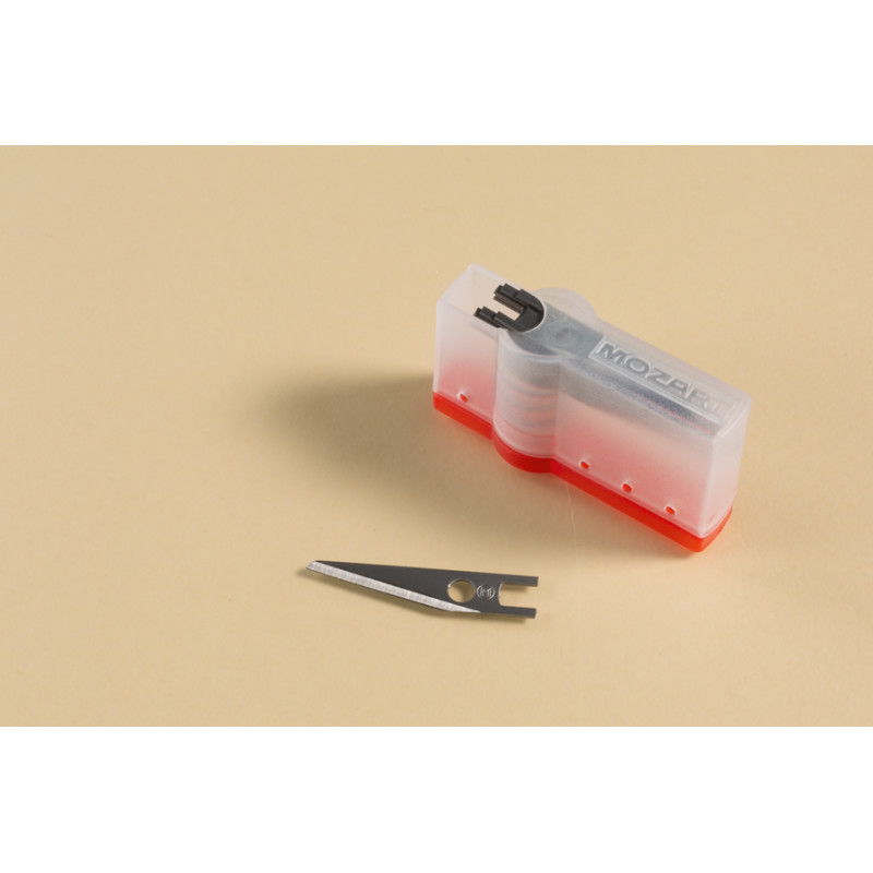 Vyměnitelné čepele (krátké) pro skalpel 90005. Speciální dávkovací box umožňuje bezpečné vyjmutí jednotlivých čepelí.