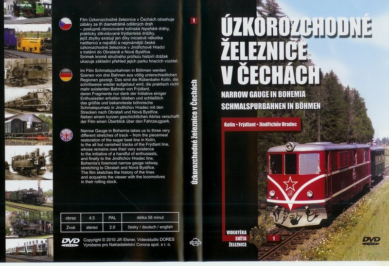 Lisované DVD v plastovém obalu s barevným přebalem obsahuje 58 minut záznamu o třech našich úzkorozchodných tratích (Kolínská řepařská dráha, trať Frýdlant v Čechách - Heřmanice, Síť JHMD. Jsou zde i archivní záběry a fotografie. Komentář čte Otakar Brousek.