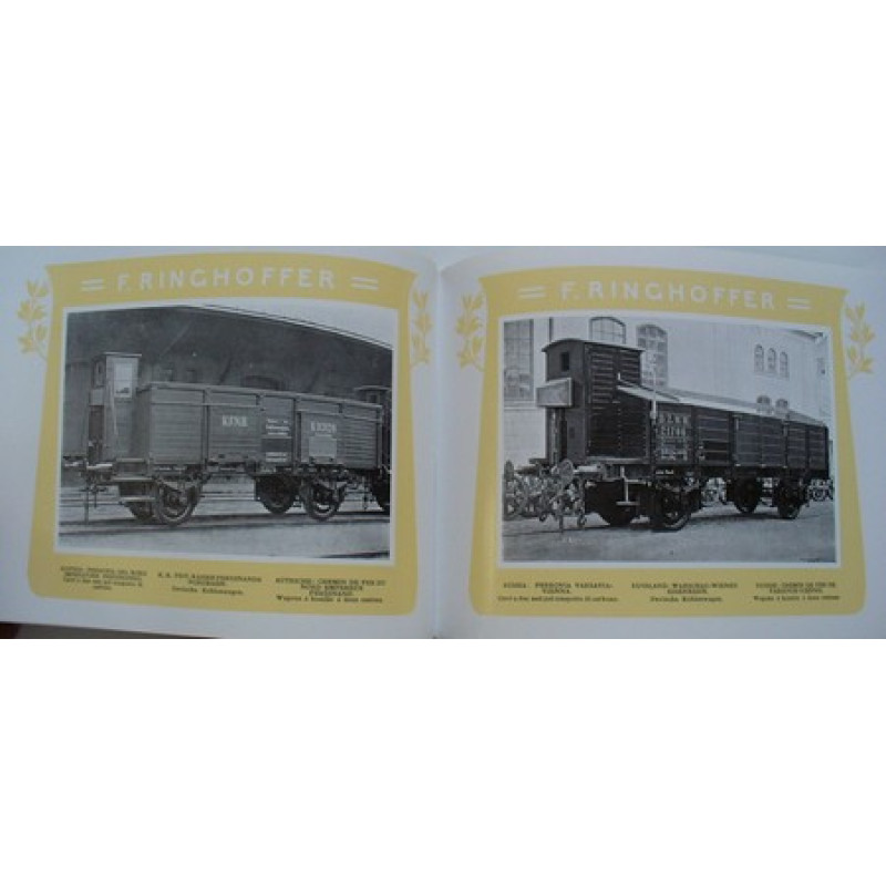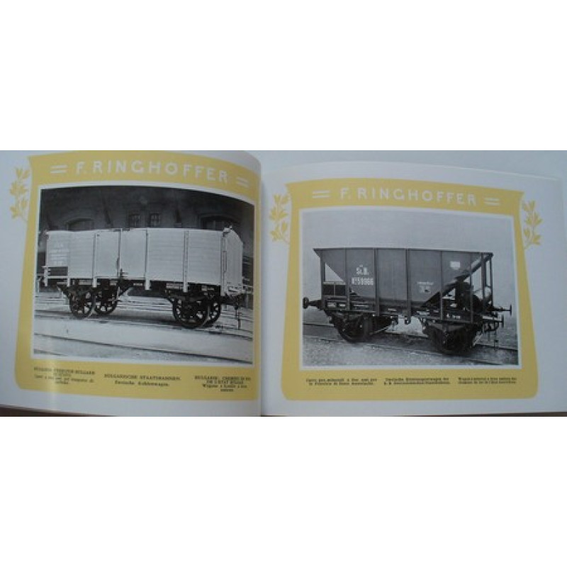 Reprint (znovuvytištěné vydání) dobového katalogu vagónky Ringhoffer Smíchow (dnes Praha Smíchov) z počátku 20. století. Obsahuje černobílé fotografie jednotlivých otevřených nákladních vozů, jak pro rakouské, tak pro mnoho dalších železničních správ.
