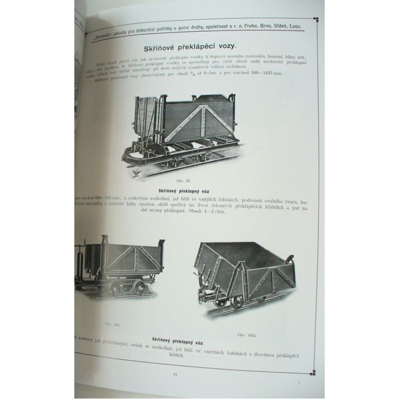 Reprint (znovuvytištěné vydání) dobového katalogu známé firmy Ferrovia z počátku 20. století (1912). Obsahuje údaje, perokresby jednotlivých produktů od kolejnic až po lokomotivy a vozy.