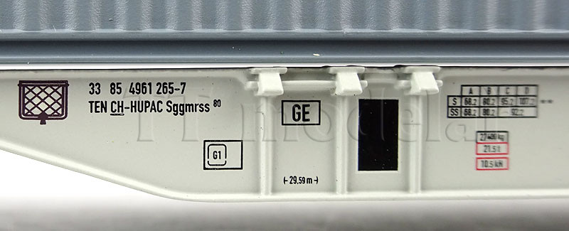 Kontejnerový vůz Sggmrs, HUPAC AG, ložený dvěma kontejnery, VI. epocha, Tillig 18068