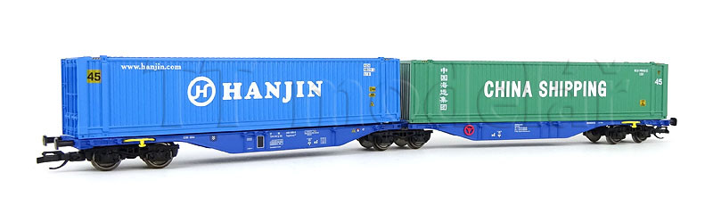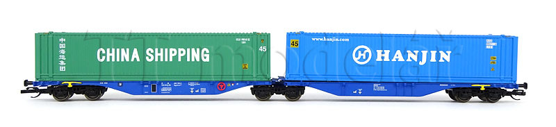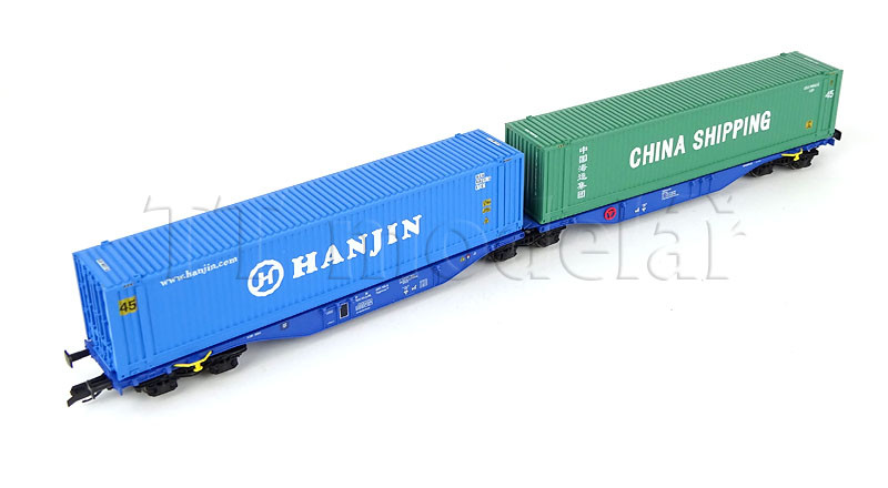 Kontejnerový vůz Sggmrs, HUPAC AG, ložený dvěma kontejnery, VI. epocha, Tillig 18068