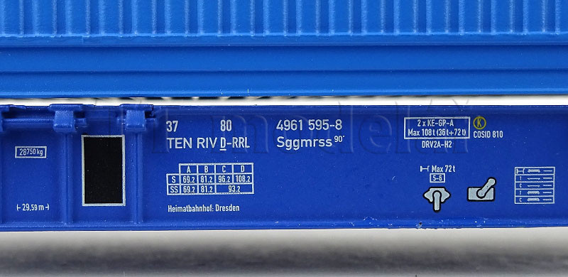 Kontejnerový vůz Sggmrs, ERR, ložený dvěma kontejnery, VI. epocha, Tillig 18065
