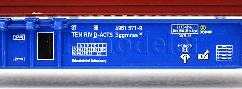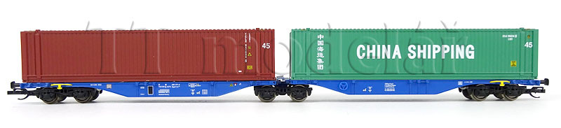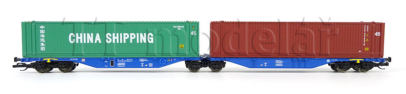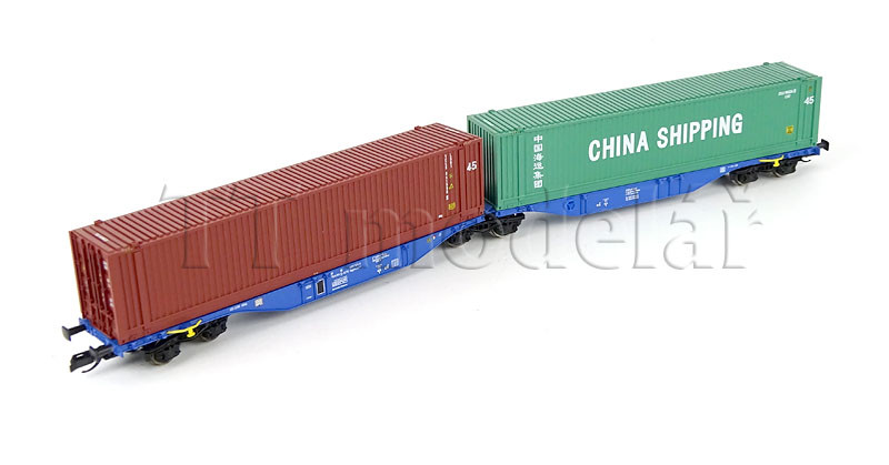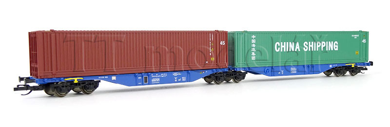 Kontejnerový vůz Sggmrss, ACTS, se dvěma 45' kontejnery, TT, VI. epocha, Tillig 18073