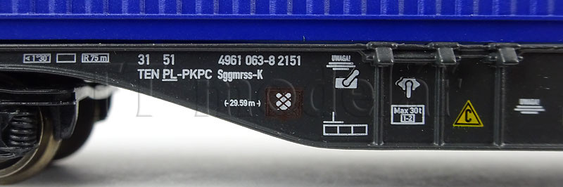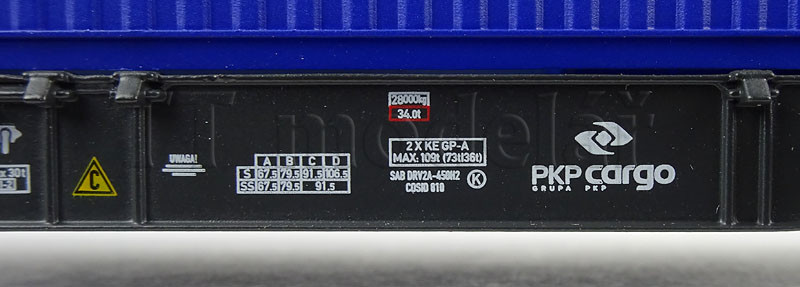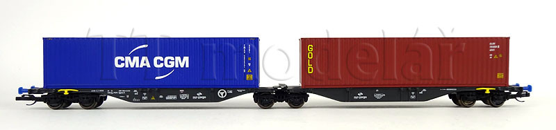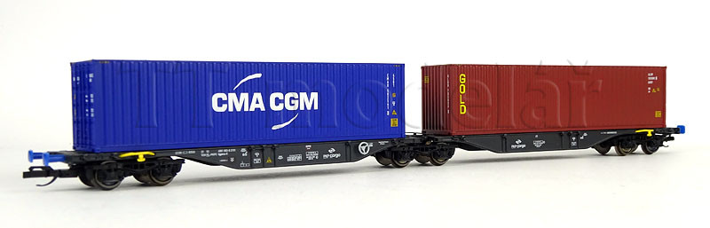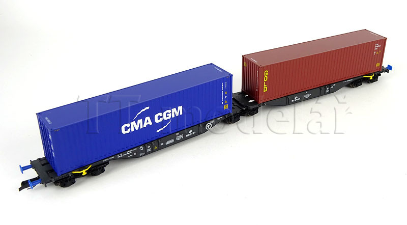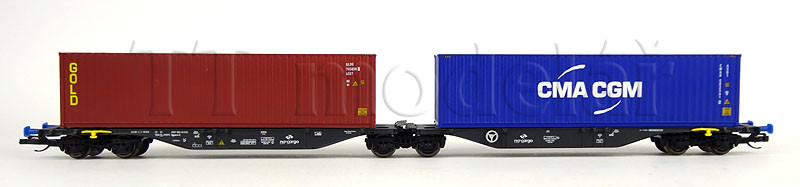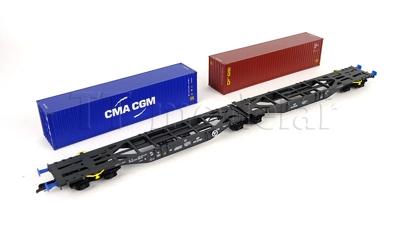 Kontejnerový vůz Sggmrss, PKP Cargo, ložený dvěma kontejnery, TT, VI. epocha, Tillig 18061