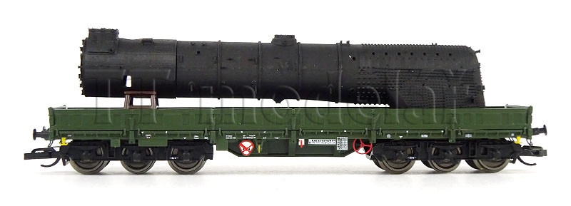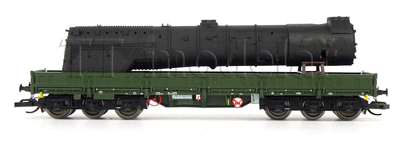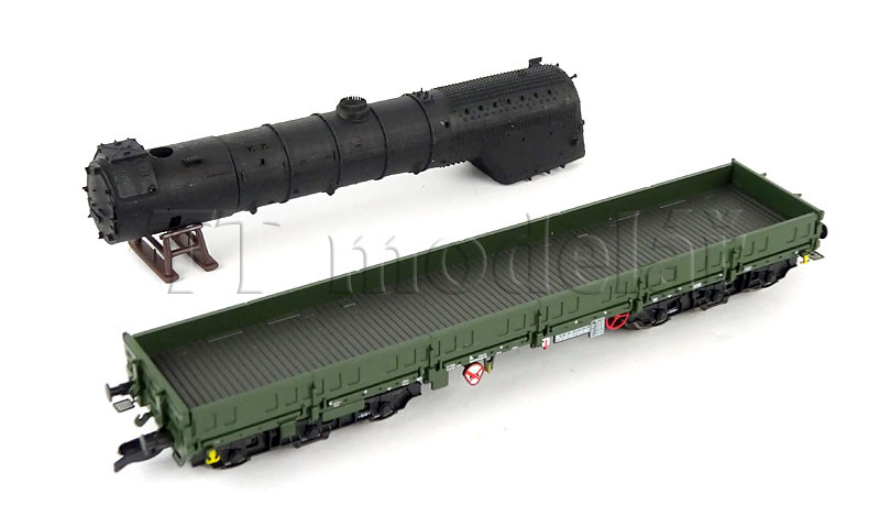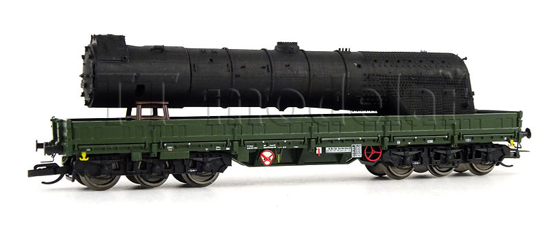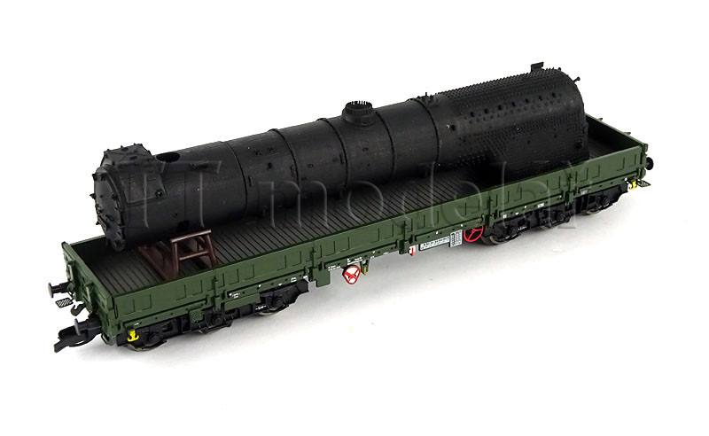 Nízkostěnný pracovní vůz Samms 4860 depa Meiningen, DR, ložený kotlem lokomotivy BR 41 Reko, IV. epocha, TT, NPE 52061