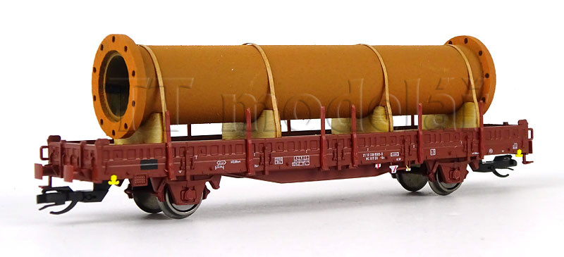 Nízkostěnný vůz Ks s klanicemi, s nákladem roury, DR, IV. epocha, TT, Busch 31512