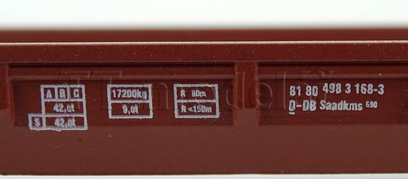 Nízkostěnný vůz Saadkms 690 „Rollende Landstrasse“, vložený nebo koncový, DB, V. epocha, TT, Busch 31208