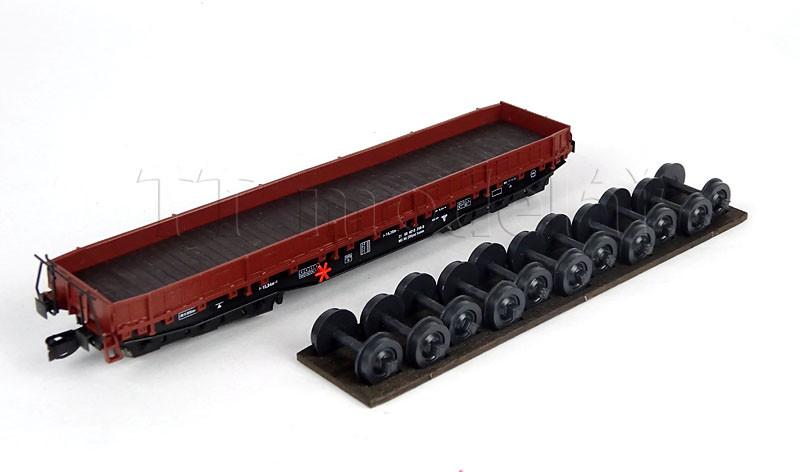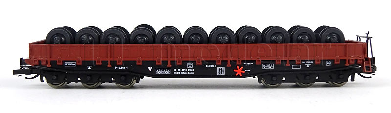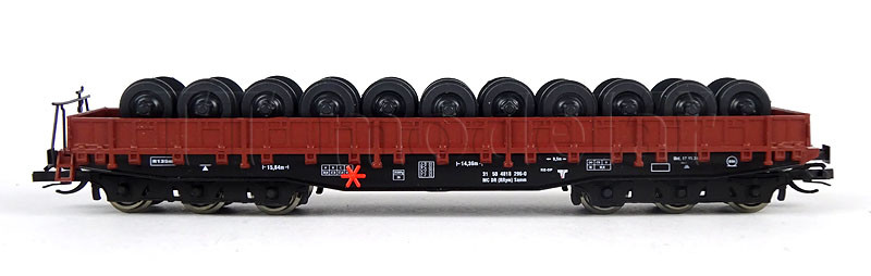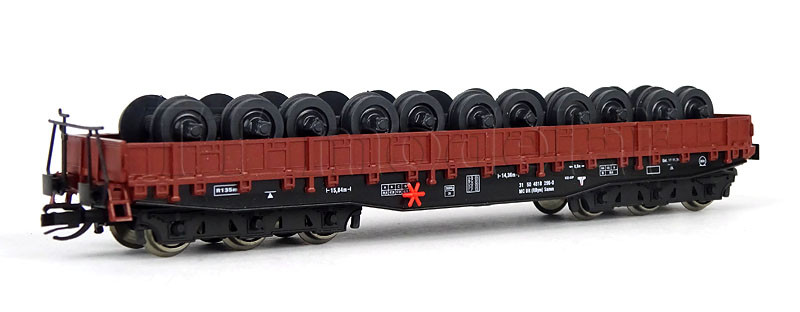 Nízkostěnný vůz Samm 4818 s nákladem dvojkolí, DR, IV. epocha, TT, Busch 31176