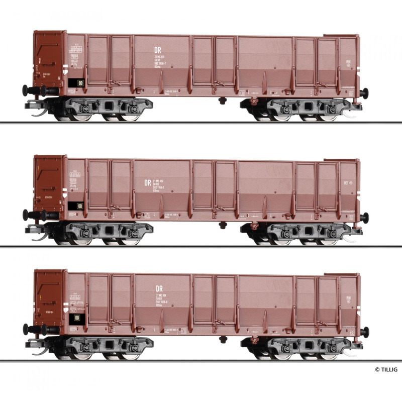 Set tří otevřených vozů OOmu, DR, IV. epocha, TT, model Galerie Tillig 2025, Tillig 502417