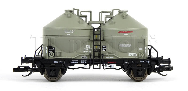 Model německého vozu na sypké materiály, využívaného hlavně pro přepravy cementu a hnojiv řady Kds 54 DB ze III. epochy. Vozy byly vyráběny sériově od roku 1955 do roku 1964 a bylo jich DB dodáno přes 1200. Ložný objem je 27 m3 a povolená rychlost 100 km/h.