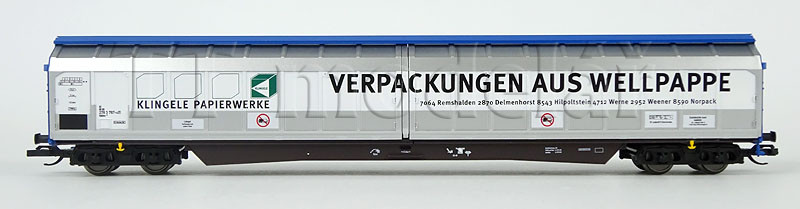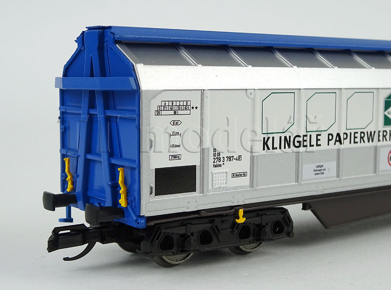 Vůz s posuvnými stěnami řady Habins „Klingele Papierwerke“, DB AG, V. epocha, TT, Tillig 15839