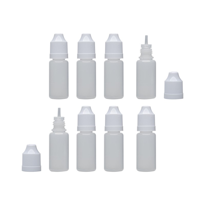 Plastová lahvička o objemu 10 ml, s uzávěrem a kapátkem, 8 kusů, Modelcraft POL1010/8