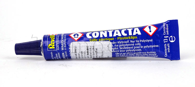 Revell Contacta je gelové lepidlo v tubě. Jeho výhodou je to, že velké díly můžete přesně umístit ještě před tím, než lepidlo zaschne.