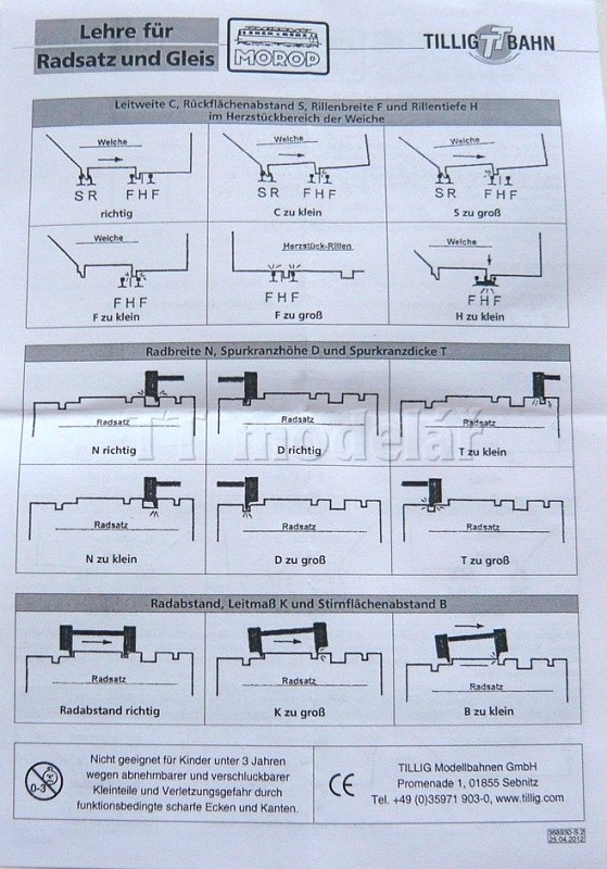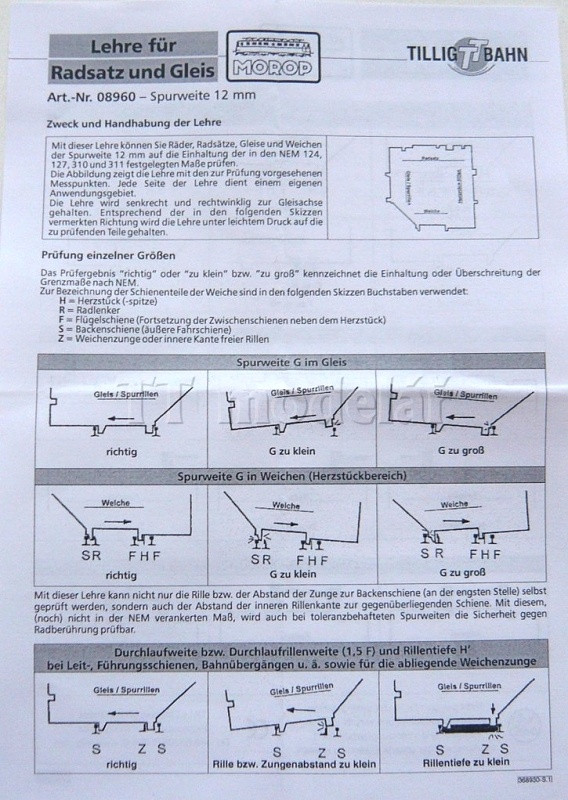 Měřicí šablona rozchod 12 mm, Tillig 08960