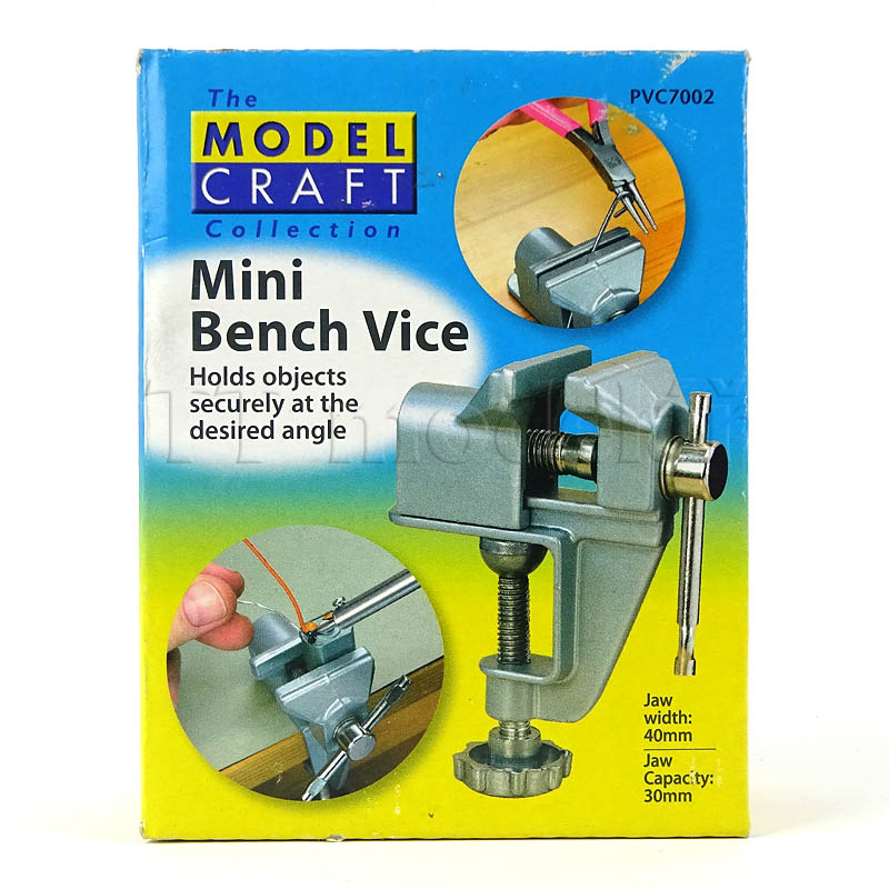 Malý stolní svěrák vhodný do modelářské dílny. Šířka čelisí je 40 mm.