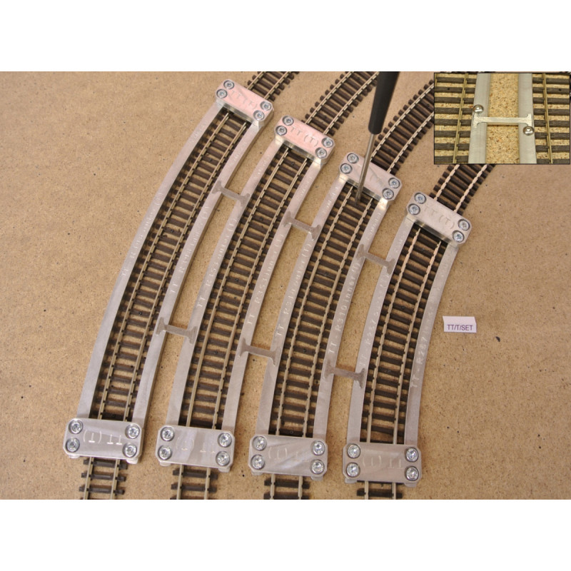 Set kolejových šablon obloukových pro flexikoleje Tillig, R 267 až 396 mm, 4 kusy, TT, KaModel TT/T/SET