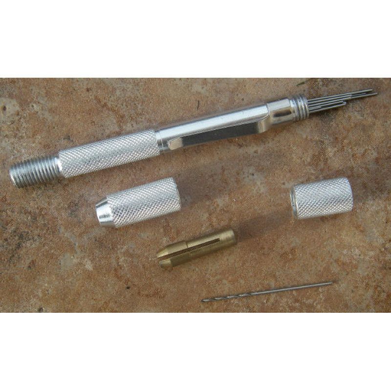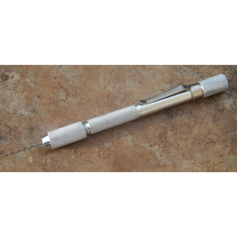 Vrtáky se upínají do čtyřčelisťové kleštiny, která je přístupná po sešroubování převlečné matice (viz obr. níže). Kleština je sice vyndavací, ale jediná a tak je upínací rozsah omezen na průměry od 0.35 mm do 1.6 mm. Vrtačka je zhotovena z hliníkové slitiny, kleština je mosazná. Vrtačku je možné zaklesnout jako propisku za okraj kapsy.